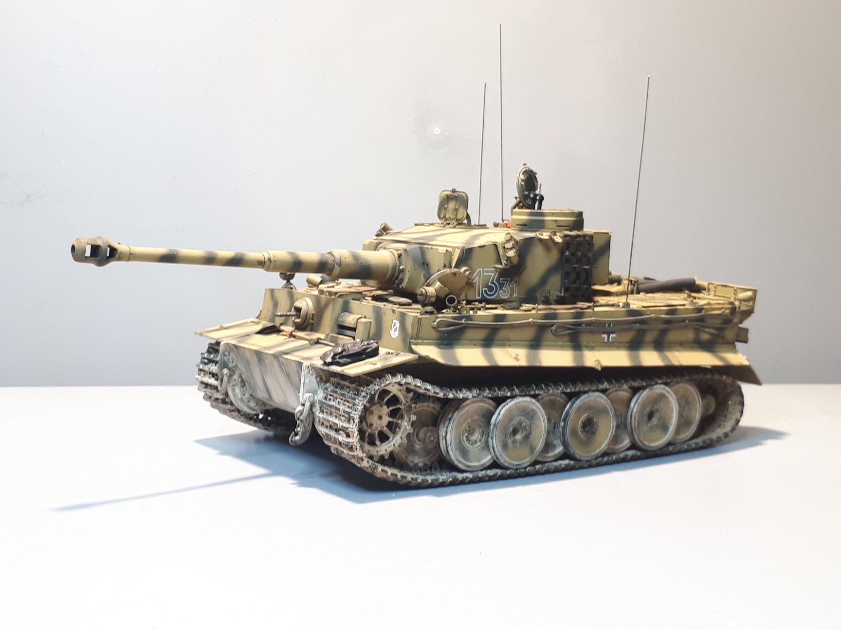 - Panzerkampfwagen VI, Tiger 1, Ausführung E (Sd. Kfz 181) "Wendorff" 2./sSS Pz.Abt. 101 in 1/35 von Tamiya